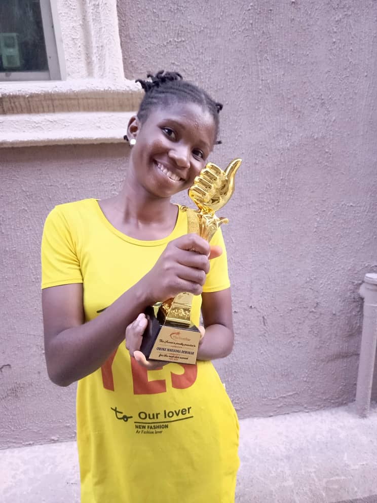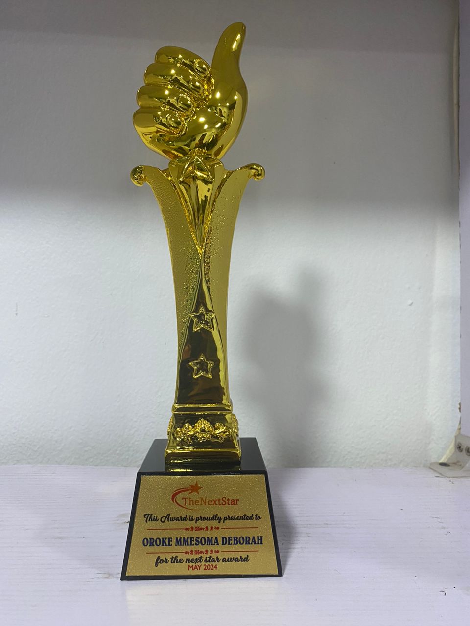 Here is the award plaque we sent Oroke Mmesoma Deborah