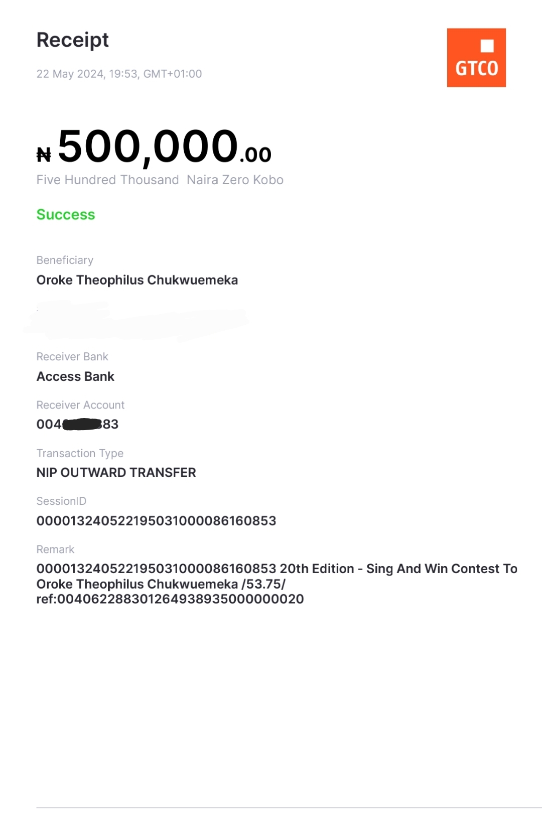We say a big congratulations to Oroke Mmesoma Deborah for emerging as the Winner of the 20th Edition - Sing and Win Contest (Special Edition) [Completed]
