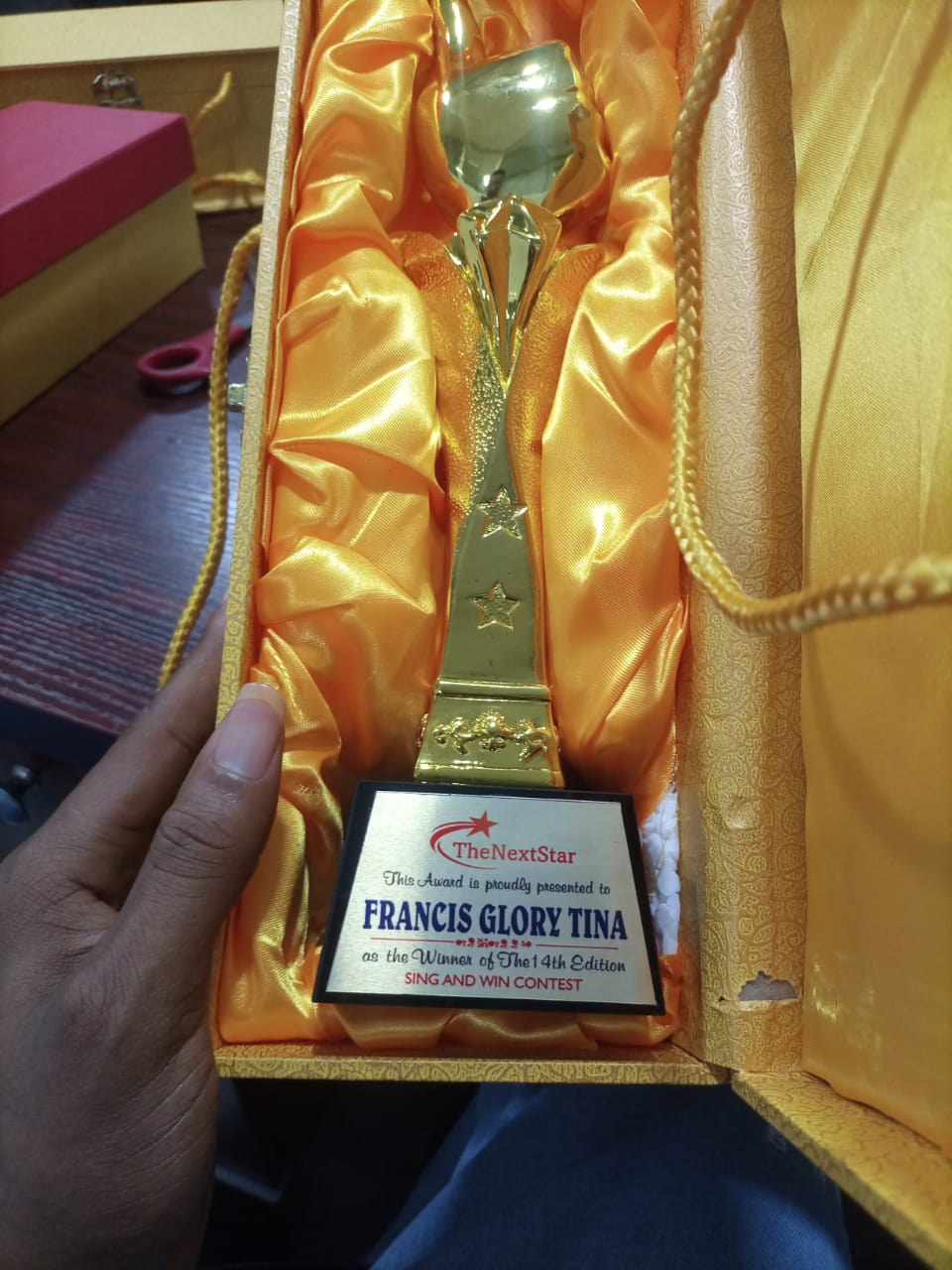 Here is a video of Francis Glory Tina unboxing his award plaque